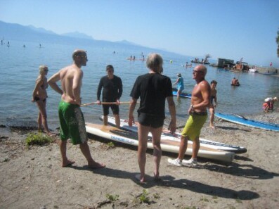 With excellent weather, well over a dozen participants learned the basics of this mostly recreational sport. Our coach and his colleage tought us not just the technique but also made us sweat with body reinforcement and balance excercises on the sandy shores on Lutry.